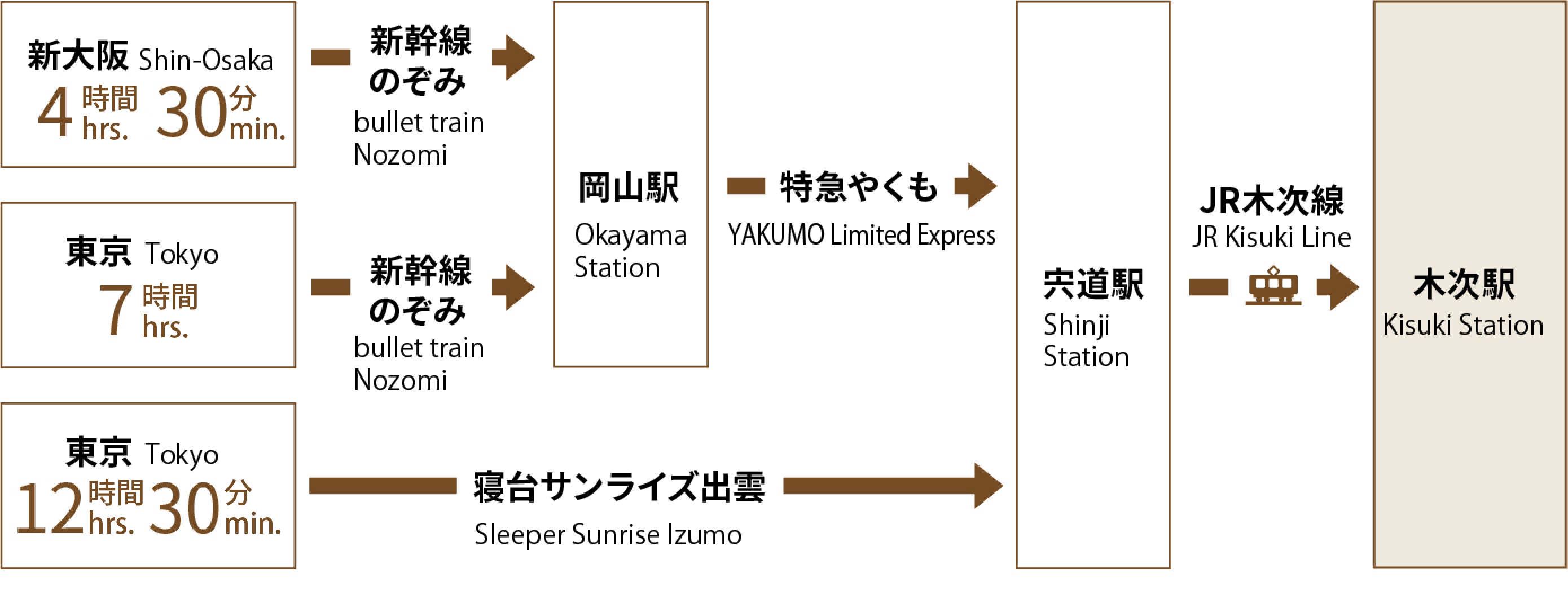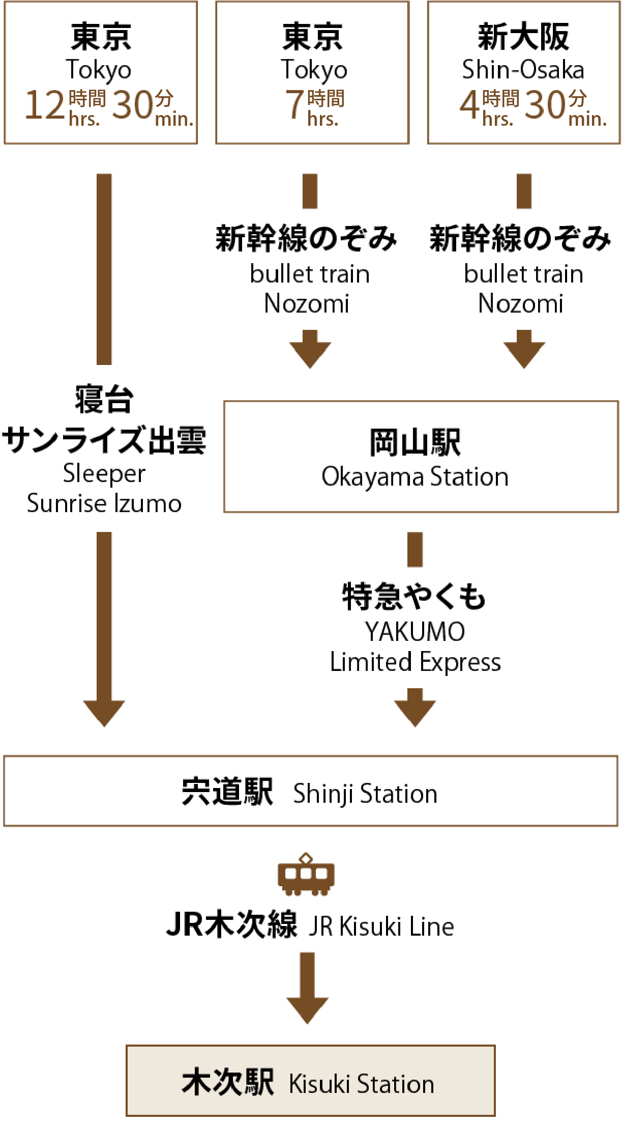 鉄道を利用して雲南市にお越しの際には、JR木次駅前からシェアカーの利用が大変便利です。カーシェアリングはレンタカーと違い、最短15分からの利用が可能で、24時間いつでも出発・返却ができる無人対応のサービスです。