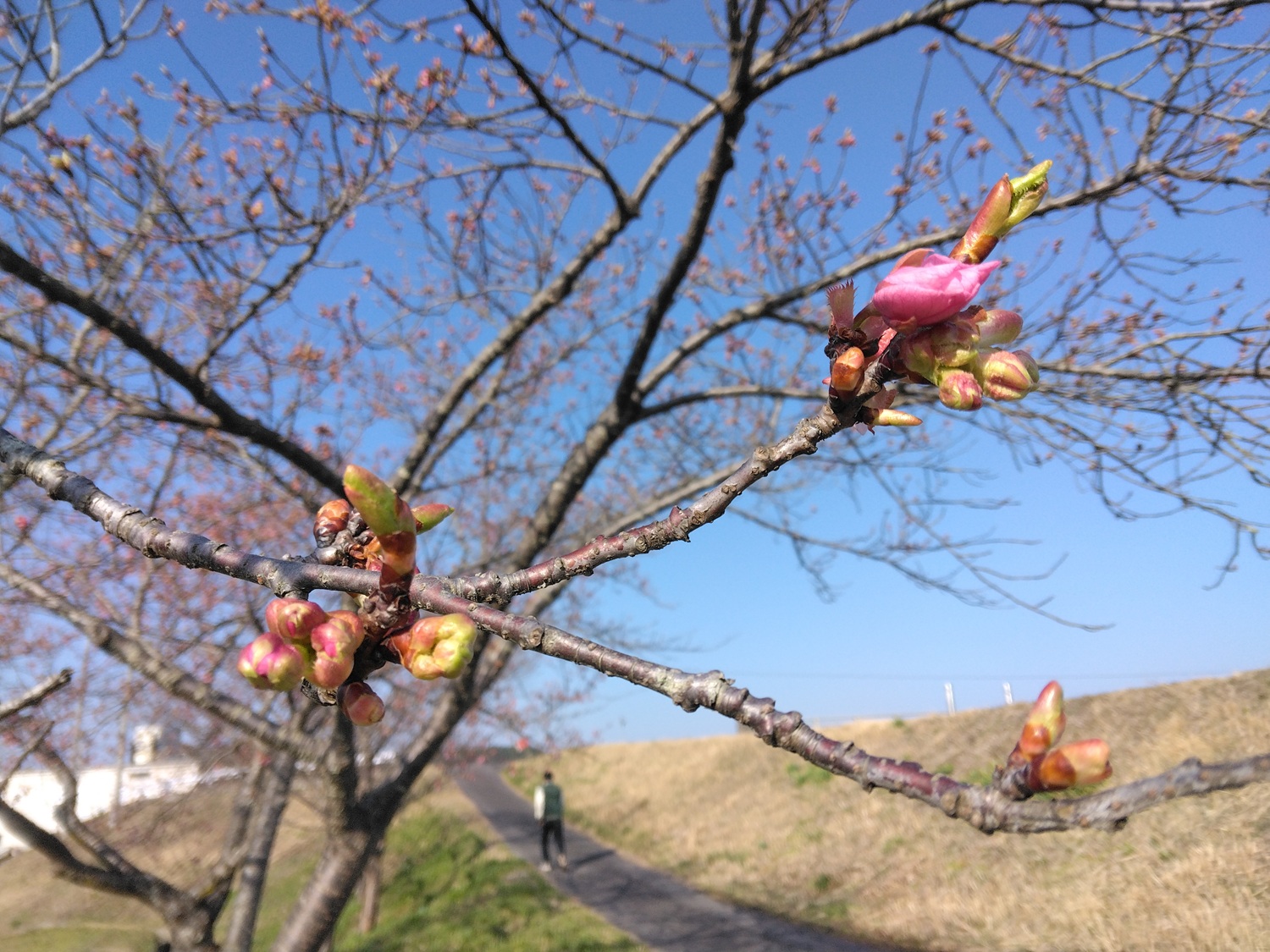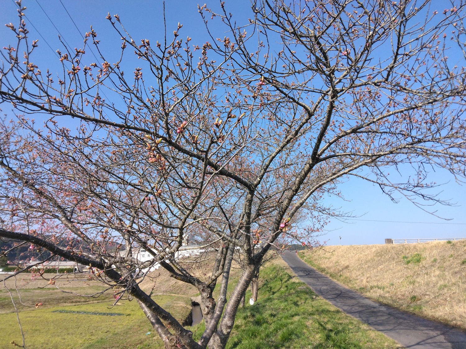 【河津桜】今日のようす(2025.3.22) 大東町の赤川沿いの河津桜の今日3月22日のようすです。 朝の早い時間に行ったこともあり、開花している花はまだ少ないです。 今日から気温が上昇するので、開花が進むことを期待しています。 来週には見ごろをむかえる予想です。