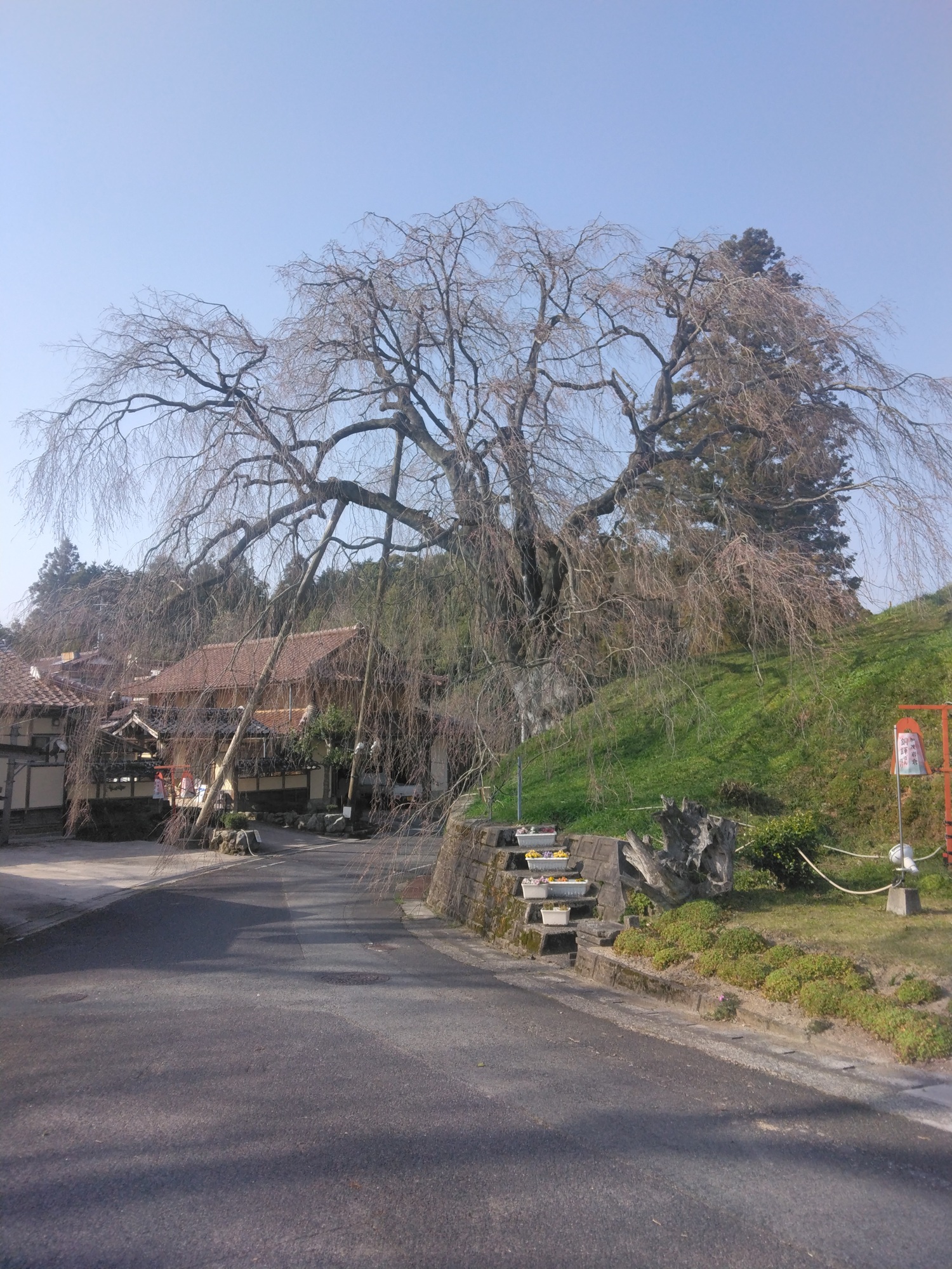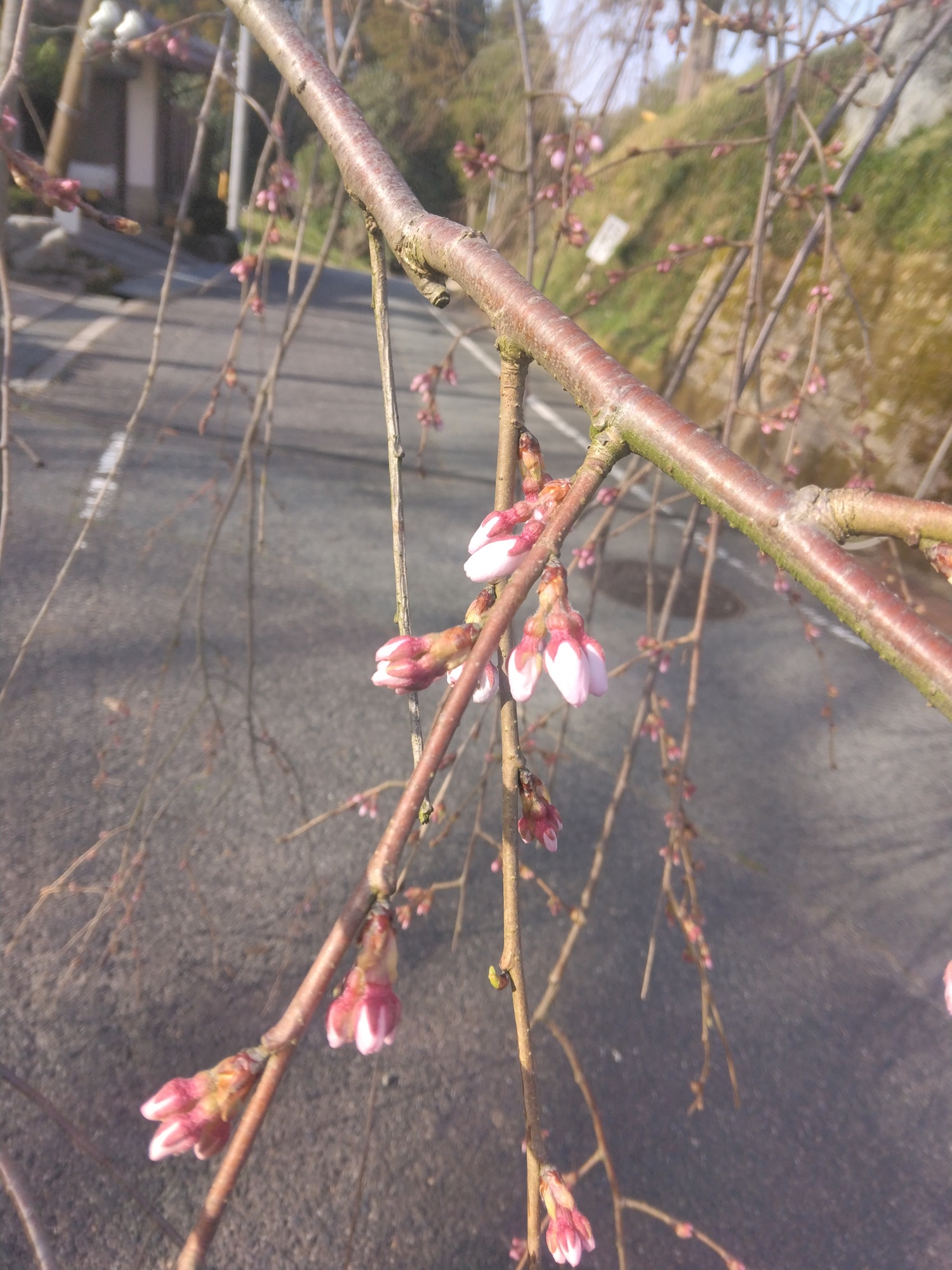 【段部のしだれ桜】今日のようす(2025.3.25) 加茂町にある段部のしだれ桜。 ここ数日の暖かい気候のおかげでずいぶんとつぼみがふくらんできました。 まもなく開花しそうです。 駐車場は、御代神社駐車場または段部自治会館駐車場をご利用ください。