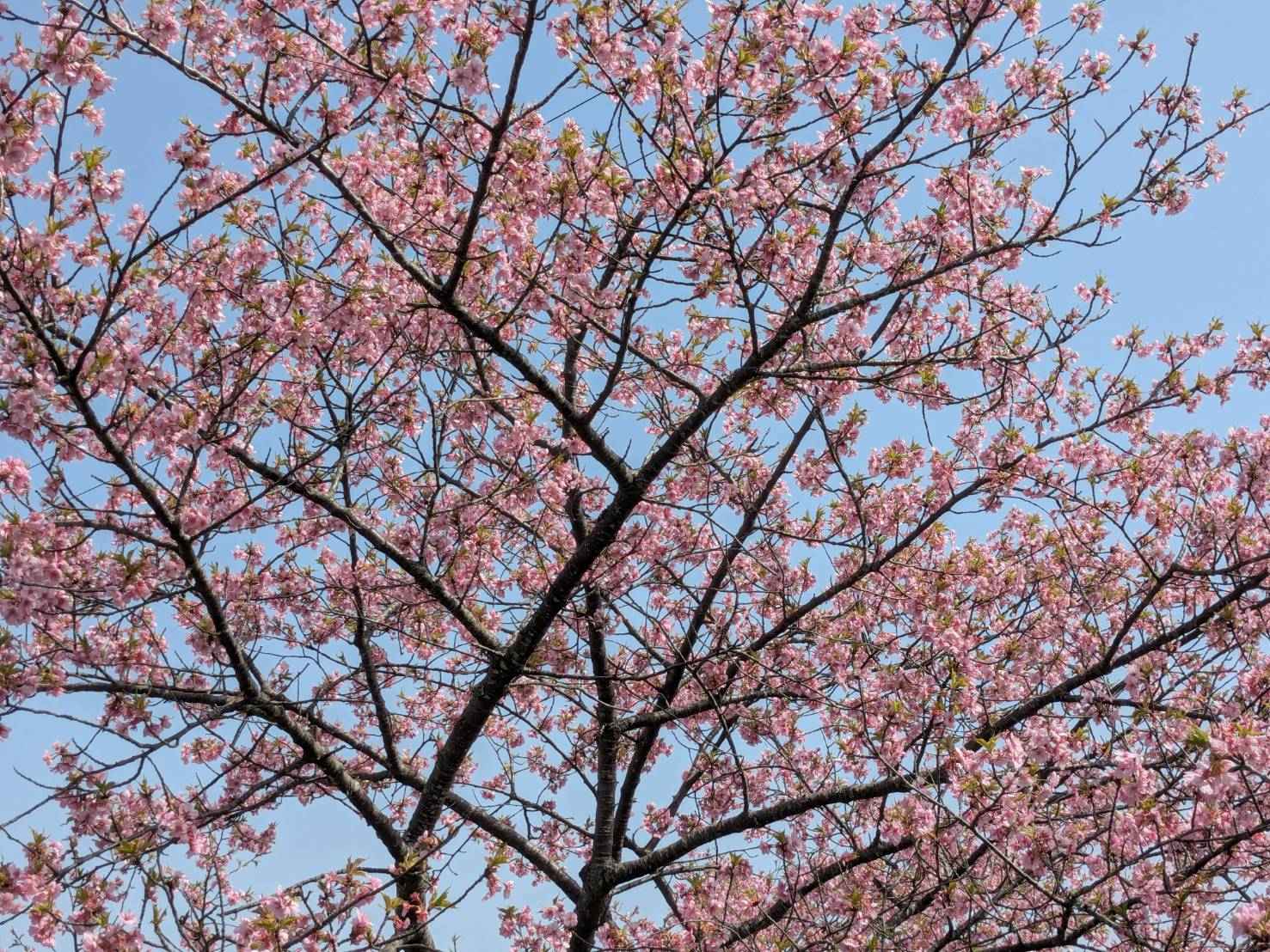 大東町の赤川沿いの河津桜は、ここ数日の暖かい気候により、今日3月26日に満開をむかえました。