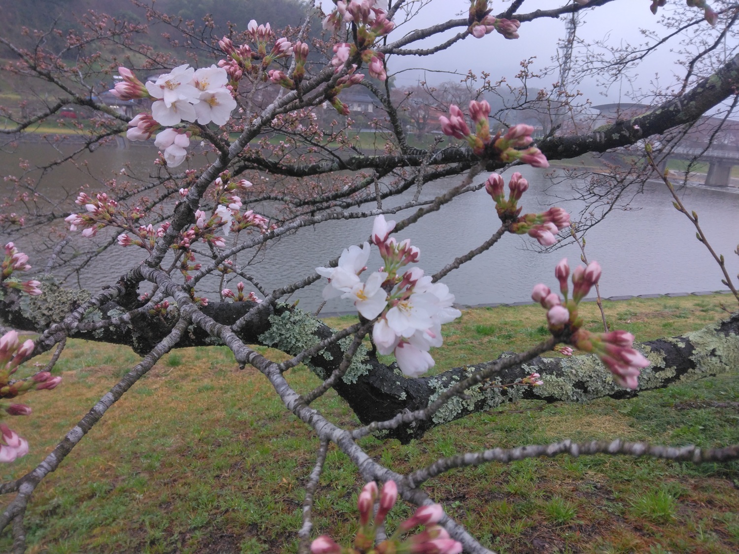 【三刀屋川河川敷】ソメイヨシノが開花しました(2025.3.28) 三刀屋町の三刀屋川河川敷にあるソメイヨシノは、今日3月28日に開花しました。 これから数日は気温が低い予報なので、見ごろは来週になりそうです。