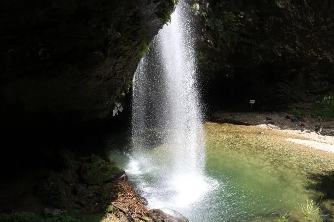 雄滝の裏側に入り、裏側から見ることができます。 毎年8月に「龍頭が滝まつり」が行われ、滝踊りが披露されます。 ※駐車場は、滝の下の駐車場と上の駐車場2か所あります。 ※大型バスは上の駐車場をご利用ください。 【滝にお出かけの際の注意事項】 ・上の駐車場から滝へは傾斜のきつい下り坂です。 ・クマ鈴などの音が出るものを携帯しましょう。 ・複数でのお出かけをお勧めします。 ・自然公園の遊歩道は自然のままの道が多くあります。 歩きやすく、滑りにくい靴でお出かけください。