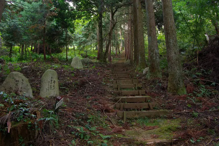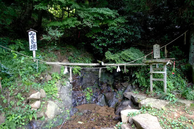 須我神社から山の方へ2キロほど行くと八雲山への登山口があり、そこからおよそ400メートル登ると、奥宮である夫婦岩に出会えます。