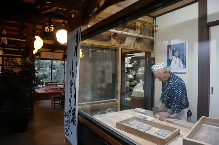 奥出雲町産の⽞そばを、店主が⼿打ちします。茹でたてを召し上がれます。